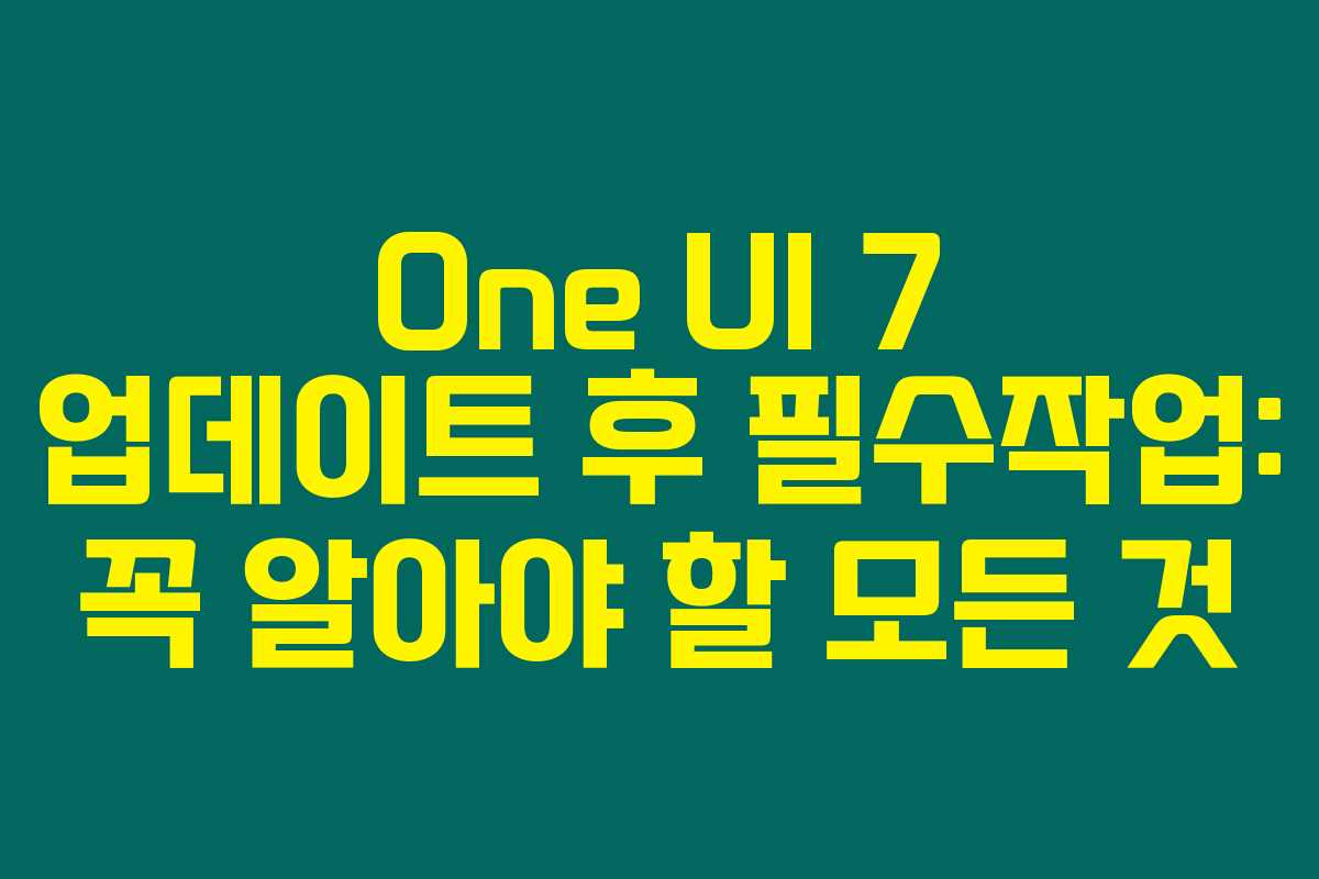 Samsung의 One UI 7 업데이트에 대해 제가 직접 체크해본 결과, 이 업데이트는 다양한 새 기능과 디자인 개선이 포함되어 있답니다. 하지만, 설치 후에 꼭 해야 할 몇 가지 필수 작업들이 있어요. 이 글을 통해 여러분께서 One UI 7을 보다 쉽고 안전하게 활용할 수 있는 방법을 자세히 설명해 드릴게요.