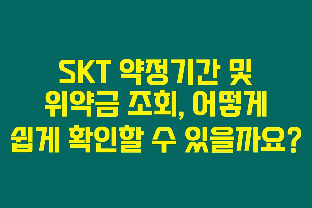 제가 직접 경험해본 결과로는, SKT의 약정기간 확인과 위약금 조회는 예상보다 간단하게 진행할 수 있답니다. 많은 분들이 새로운 스마트폰을 구매하거나 기존 통신 요금제를 변경하고 싶을 때, 계약 약정이 남아 있는지 궁금해하시지요. 아래를 읽어보시면, SKT 약정기간 및 위약금을 확인하는 방법과 그 과정을 쉽고 빠르게 이해할 수 있을 거예요.