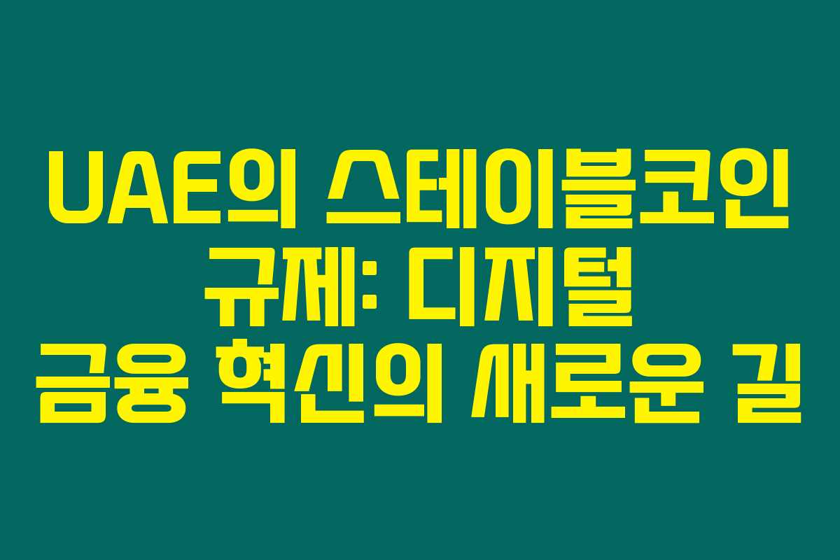 UAE의 스테이블코인 규제: 디지털 금융 혁신의 새로운 길